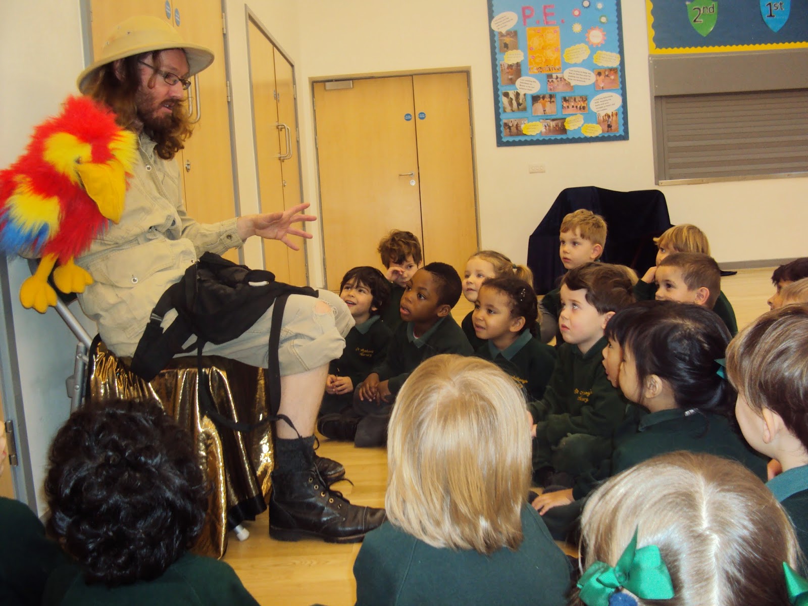 We went on a story hunt with Mark from the Freshwater Theatre Company; we climbed mountains, swam seas and sunk into sand on our hunt for Handa's fruit.